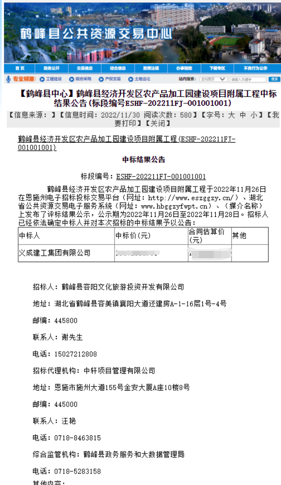 近日,我公司参与了“鹤峰县经济开发区农产品加工园建设项目附属工程招标代理服务项目”,经评审委员会综合评审,项目业主确认,确定中轩项目管理有限公司成功中标鹤峰县经济开发区农产品加工园建设项目附属工程招标代理服务项目。
