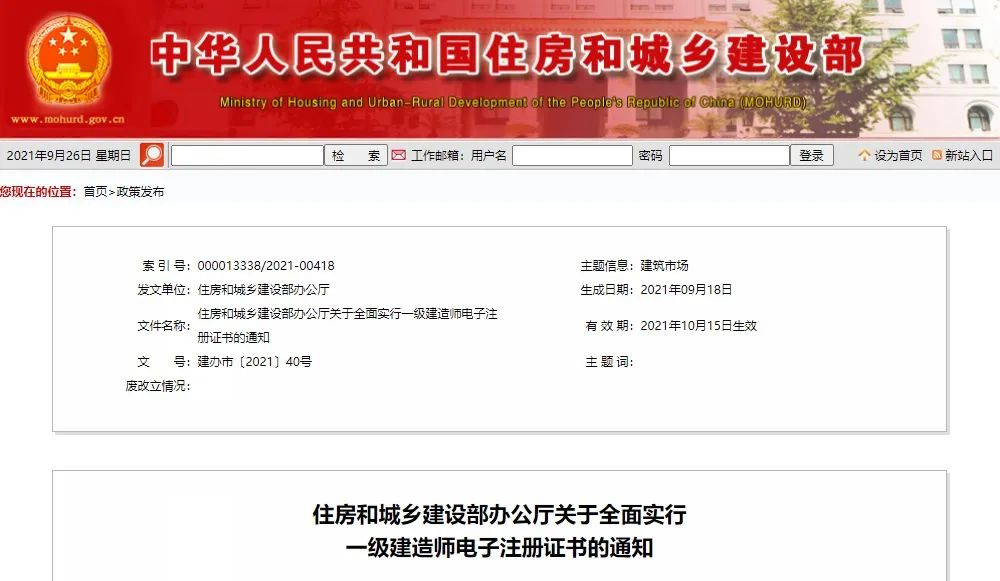 2.自2021年10月15日起,全国范围内准予一级建造师初始注册、增项注册、重新注册、延续注册的,不再发放纸质注册证书或加贴防伪贴;聘用单位基本信息修改的,不再加贴防伪贴;因纸质注册证书遗失、污损或个人信息修改等需重新发放注册证书的,不再补发或更换纸质注册证书。