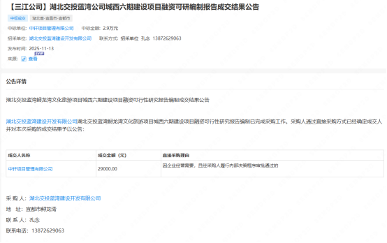 11月13日,我公司中标湖北交投蓝湾公司城西六期建设项目融资可研编制。公司将以公开、公平、公正的负责态度,坚持客户至上的宗旨完成工作内容。