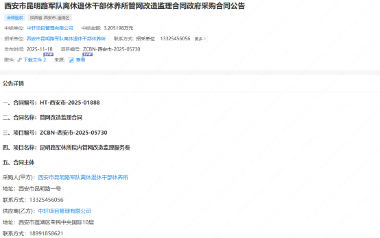 11月18日,我公司中标西安昆明路军休所院内管网改造监理项目。公司将以公开、公平、公正的负责态度,坚持客户至上的宗旨完成工作内容。