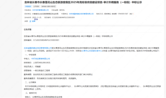 11月25日,我公司中标吉林省长春市长春莲花山生态旅游度假区2025年高标准农田建设项目-审计外聘服务(一标段)。公司将以公开、公平、公正的负责态度,坚持客户至上的宗旨完成工作内容。