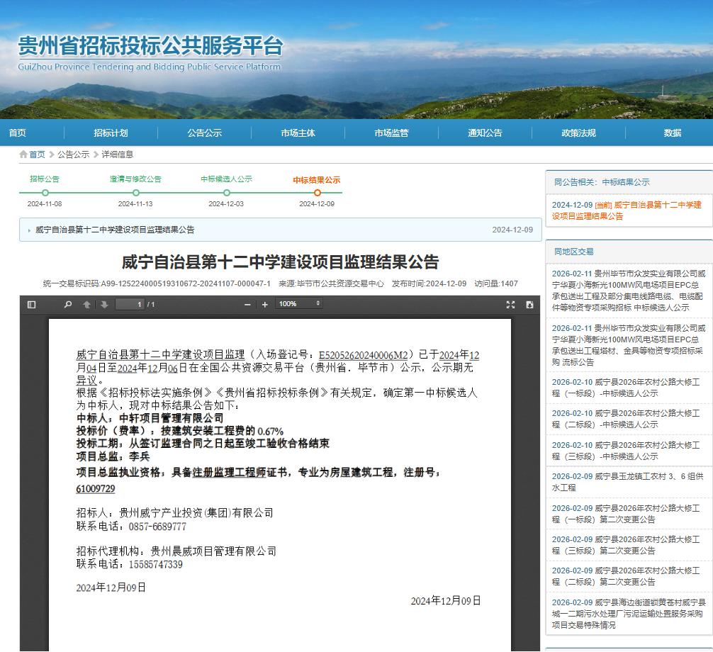 相关链接:http://ztb.guizhou.gov.cn/trade/bulletin/?id=655879