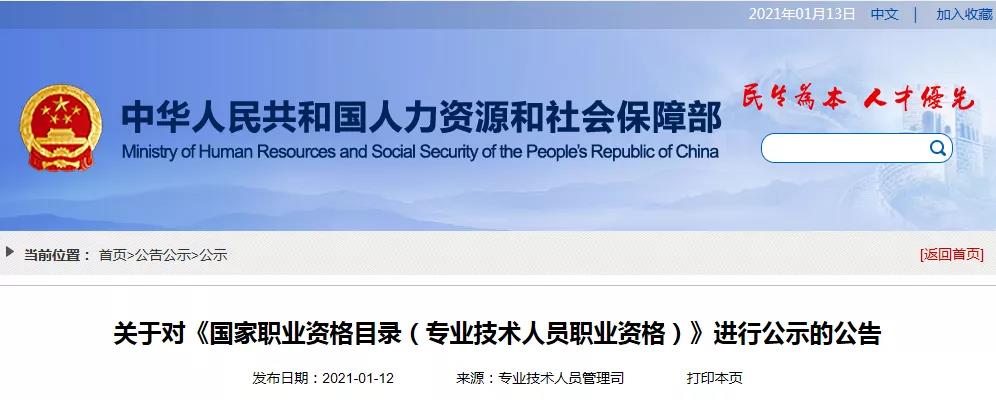 为贯彻落实国务院“放管服”改革要求,结合近年来国务院有关部门职责调整、行政审批事项改革等情况,拟对2017年公布的《国家职业资格目录》专业技术人员职业资格部分进行调整。调整后,拟列入专业技术人员职业资格58项,其中,准入类31项,水平评价类27项。现将调整后的《国家职业资格目录(专业技术人员职业资格)》予以公示,公示期7天。如有意见建议,请于2021年1月19日之前将署名意见建议反馈至邮箱zjszhichengchu@163.com。